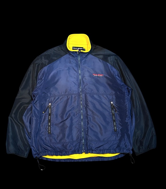 polo sports ポロスポーツ ナイロンフリースジャケット ポロスポーツのカラーリングらしいネイビー×イエローの好配色。 いつになっても飽きない定番です。 サイズL 着丈77 身幅65 肩幅55 袖丈65