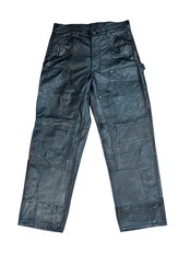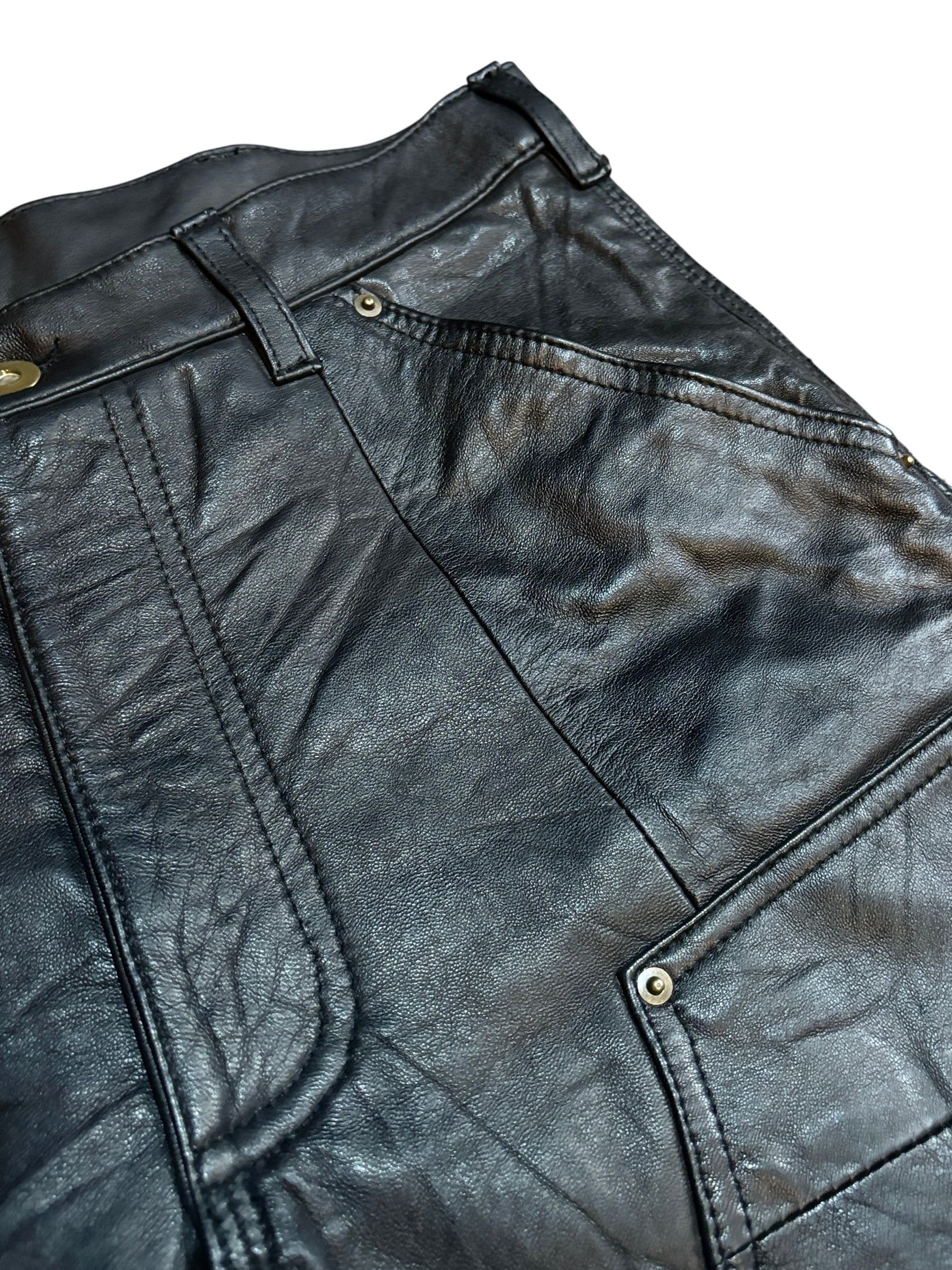 レザージャケットやパンツを解体し再構築した贅沢なダブルニーレザーパンツです。