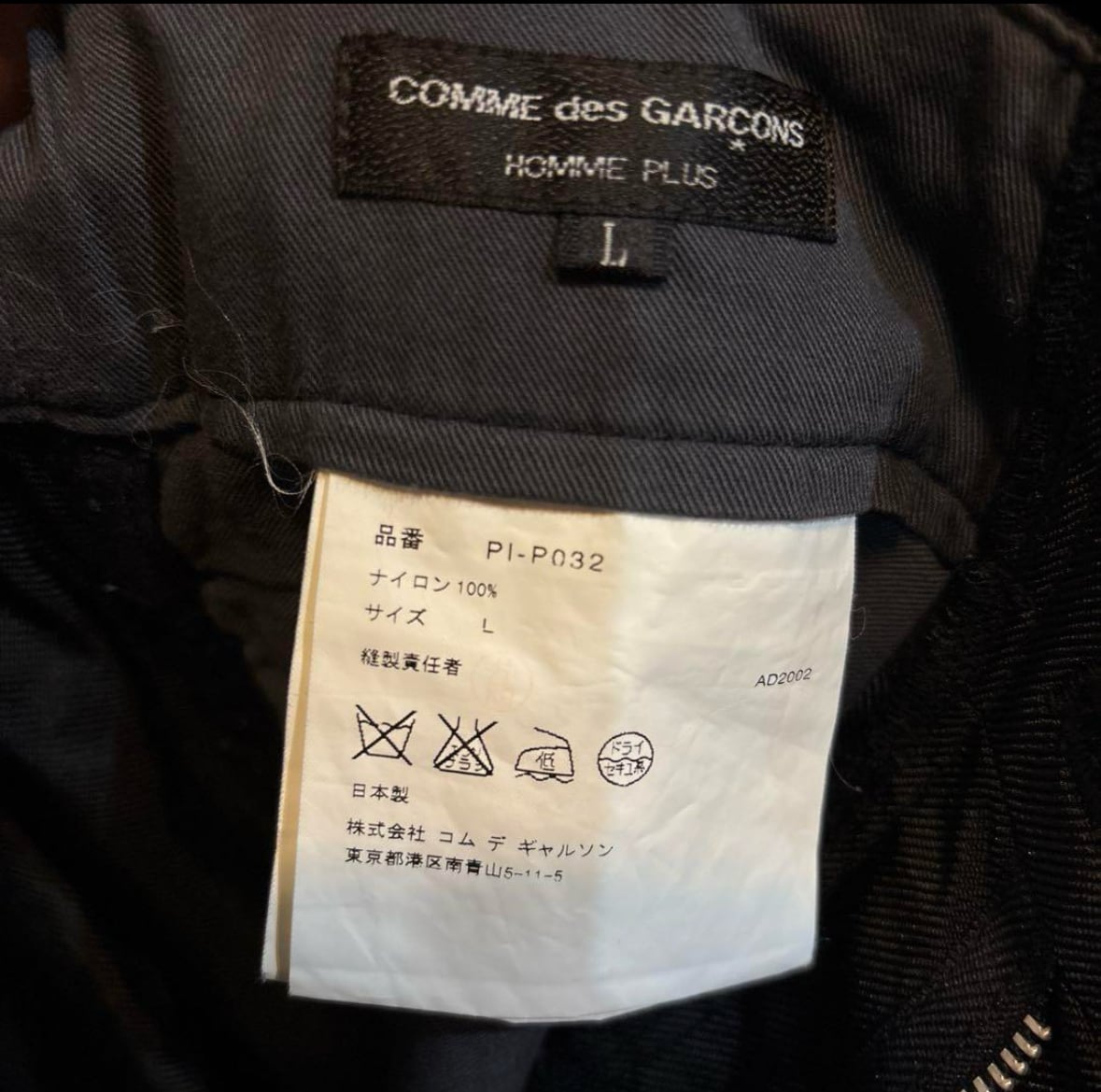 AD2002年のコムデギャルソンオムプリュス、高密度ナイロンパンツ。