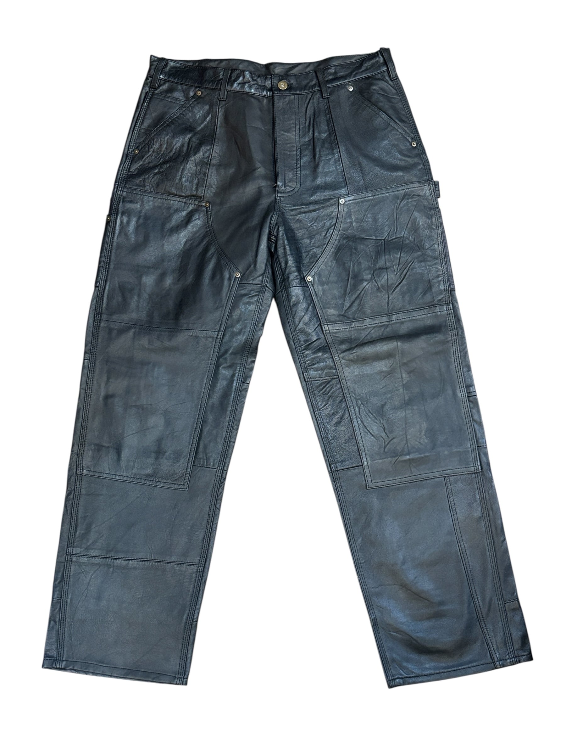 完全限定の当店別注のレザーダブルニーペインターパンツ。