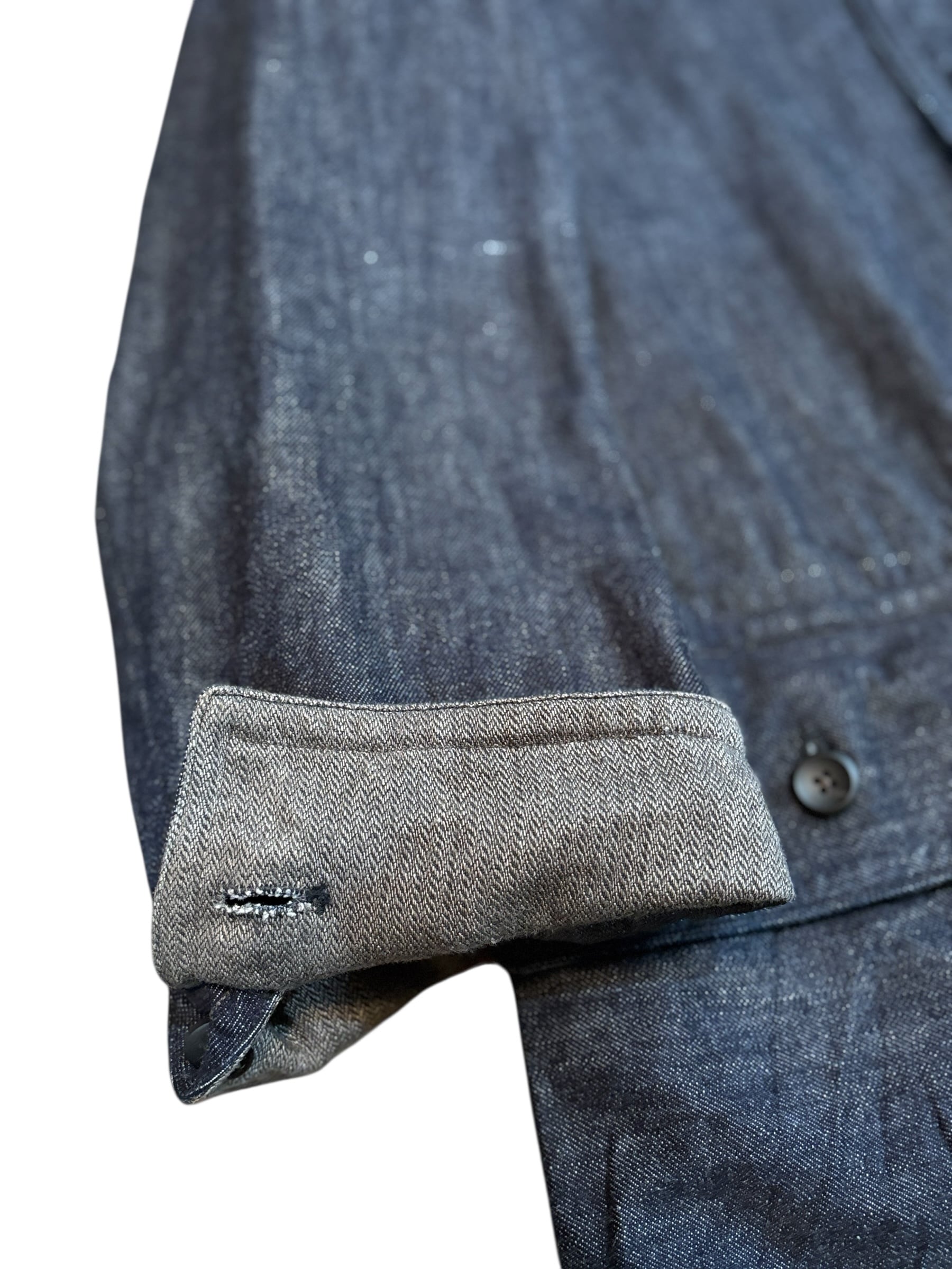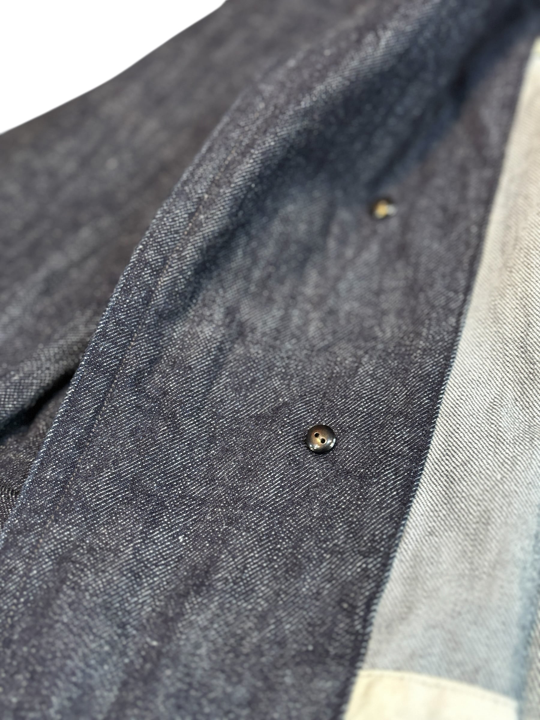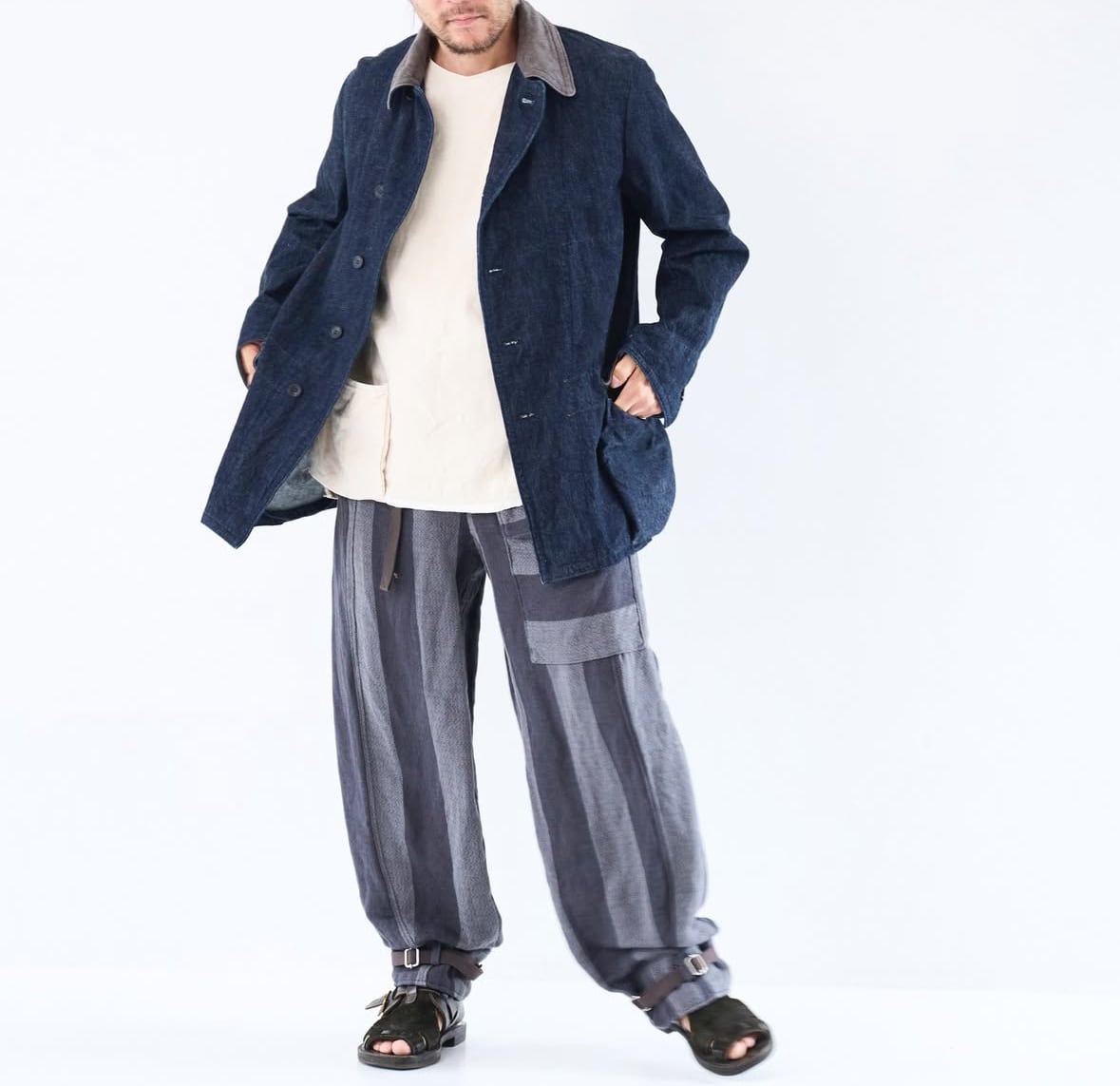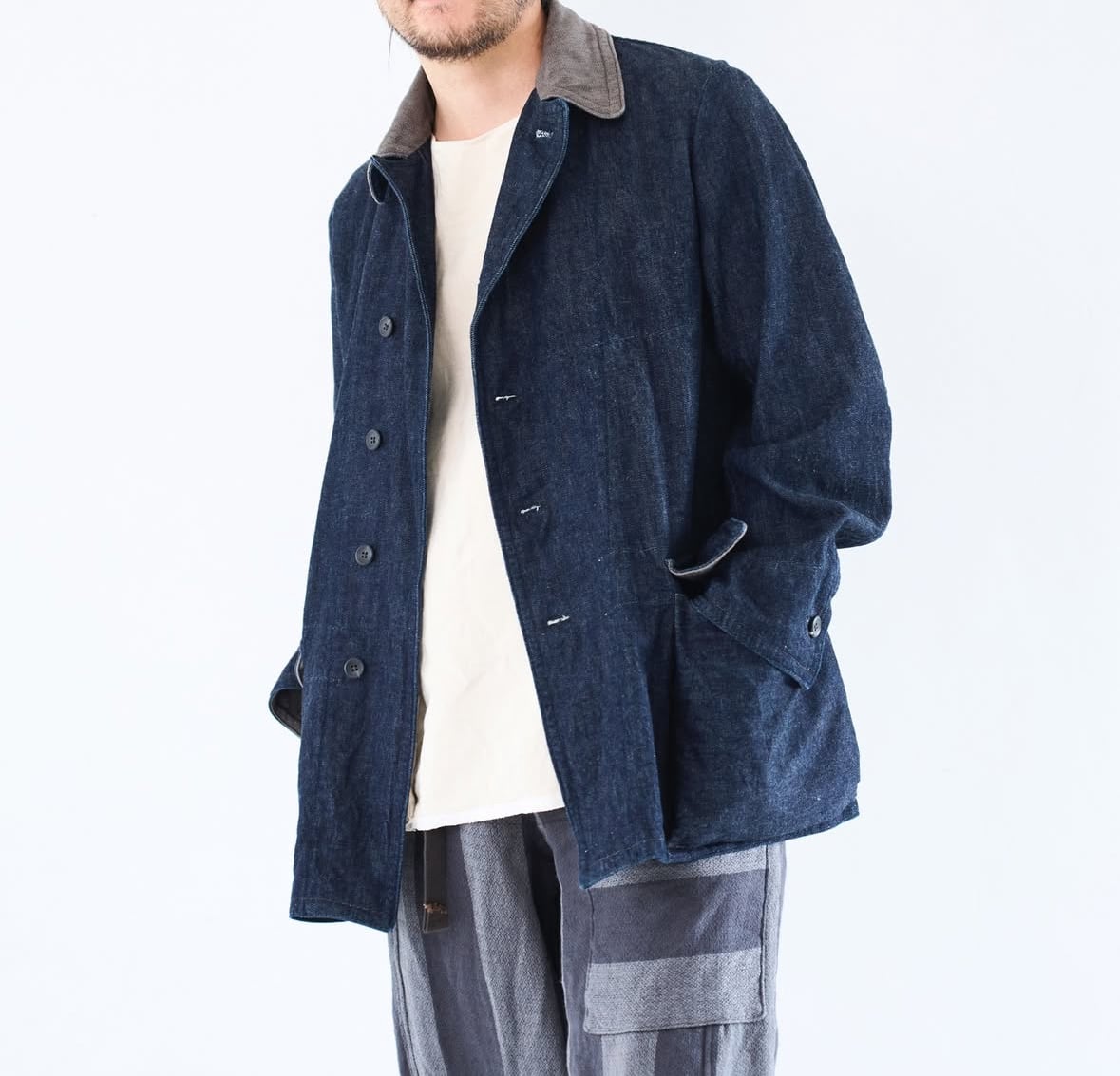 セルヴィッチデニムをワンウォッシュした生地を使用したカバーオール。細部までこだわり抜かれた品格の漂うアイテムです。立体的な作りのポケットや、襟、袖裏の切り替えなども目を惹きます。山っぽくなりがちなデニムのカバーオールですが、こちらは都会的な印象で街着にもうってつけです。ヴィンテージのスタイリングに羽織ってコーディネートを底上げしてくれる最高の1着。