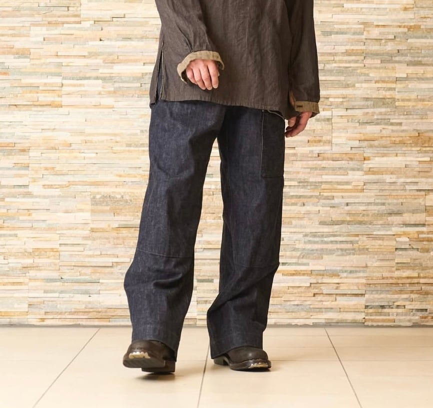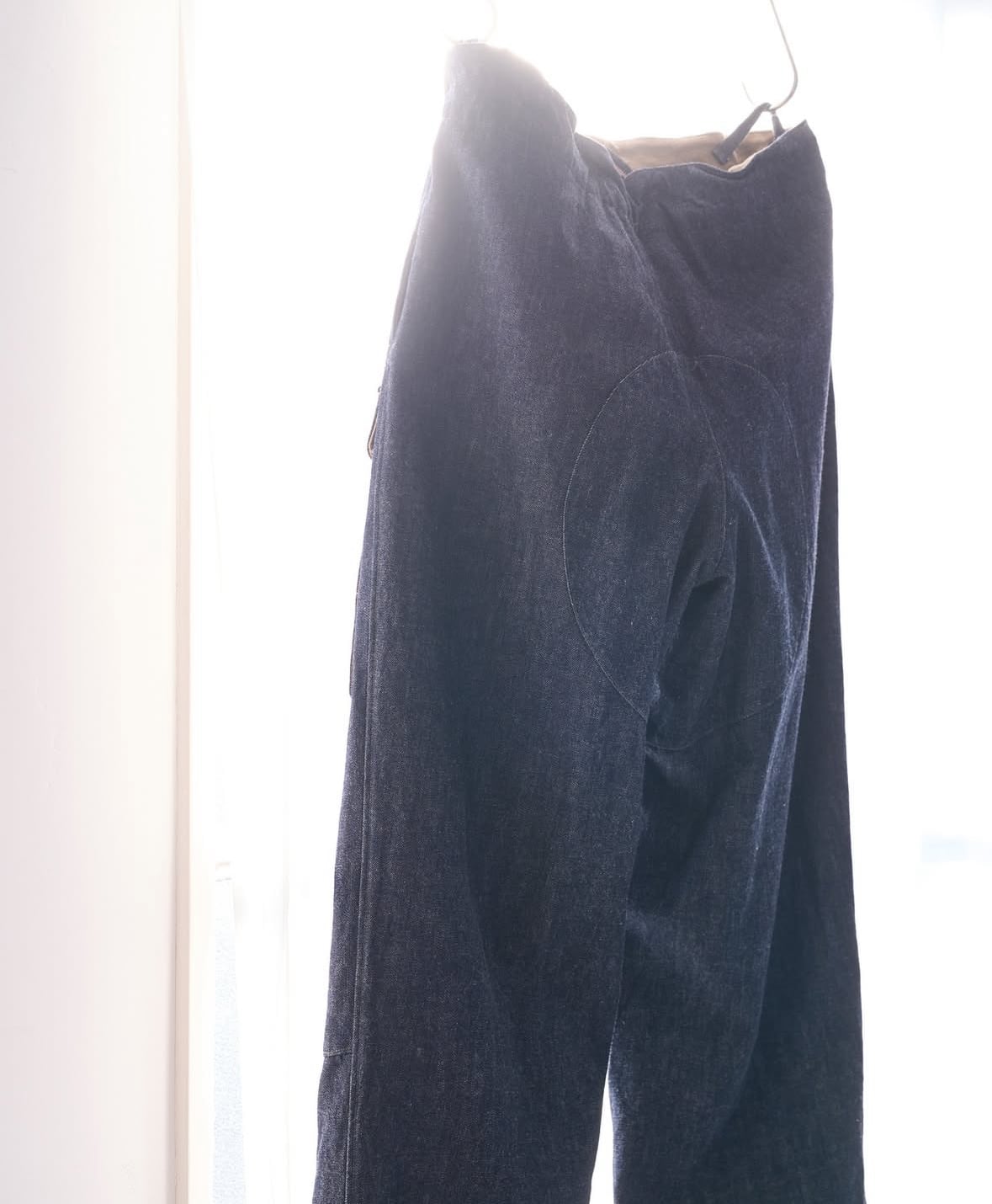 元々はイギリス軍のオーバーパンツがサンプルになっていますが、工房西谷のオリジナリティを感じるシルエットに昇華しております。