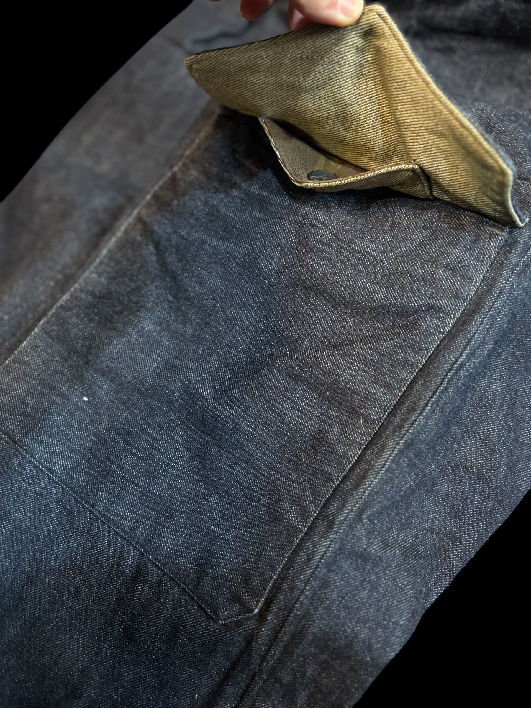 気づかない方もいますが実はダブルニー仕様になっていますのでカーハートのようにガシガシ履き込んでアタリ、色落ちを楽しんでいただけるのです。