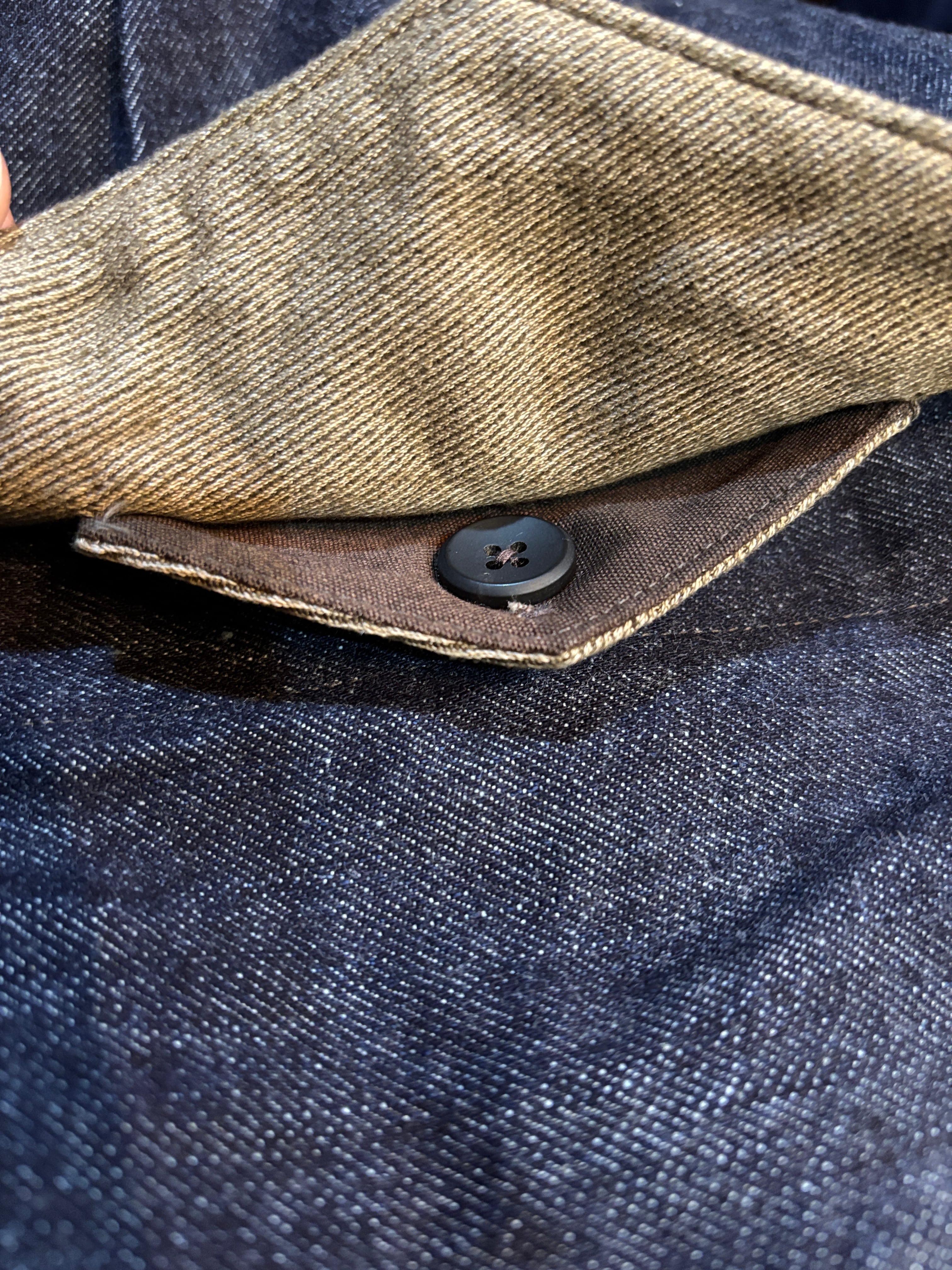 特徴としてはやはり前ポケットが目に入ります。慣れるとこのポケット抜群に使いやすいんです!作りもフラップをめくるとボタン開閉できるフラップが付いていたりで職人技を感じる堅牢な作りになっています。