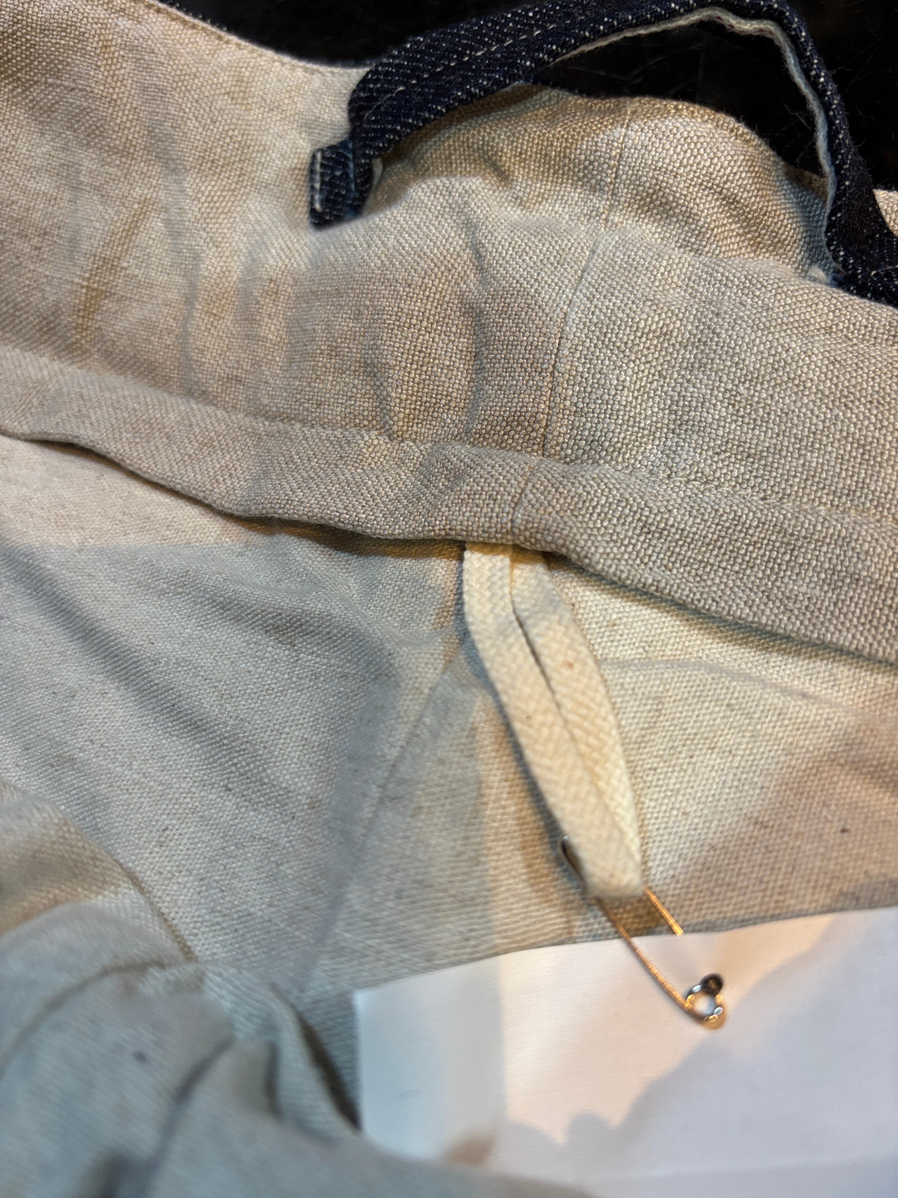 ウエストがベルトで絞れるようになった新作です。(以前は紐で結ぶタイプでした。)