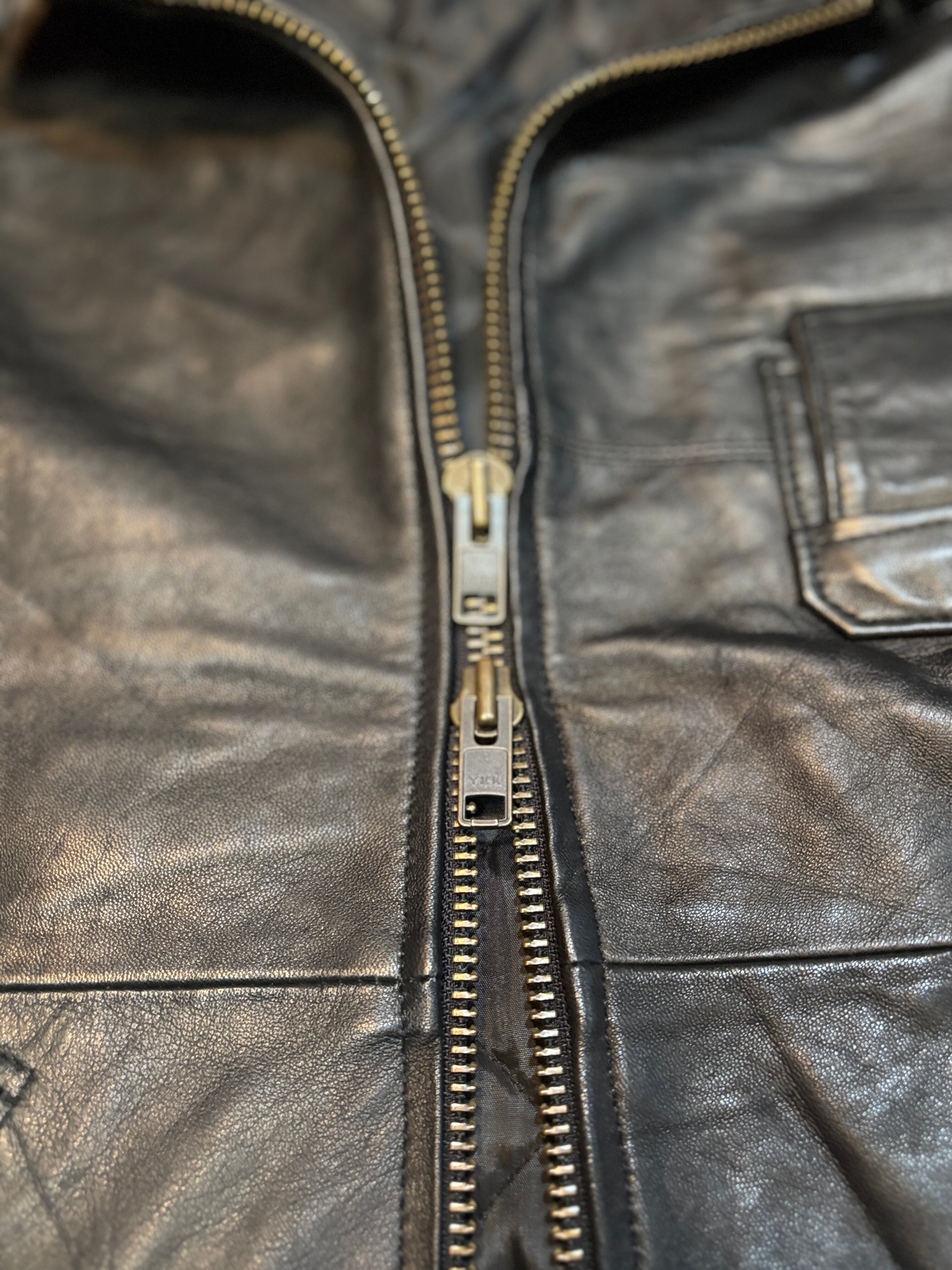 ビンテージのレザージャケットやパンツを解体し、再構築したフランス空軍タイプのレザージャケットです。