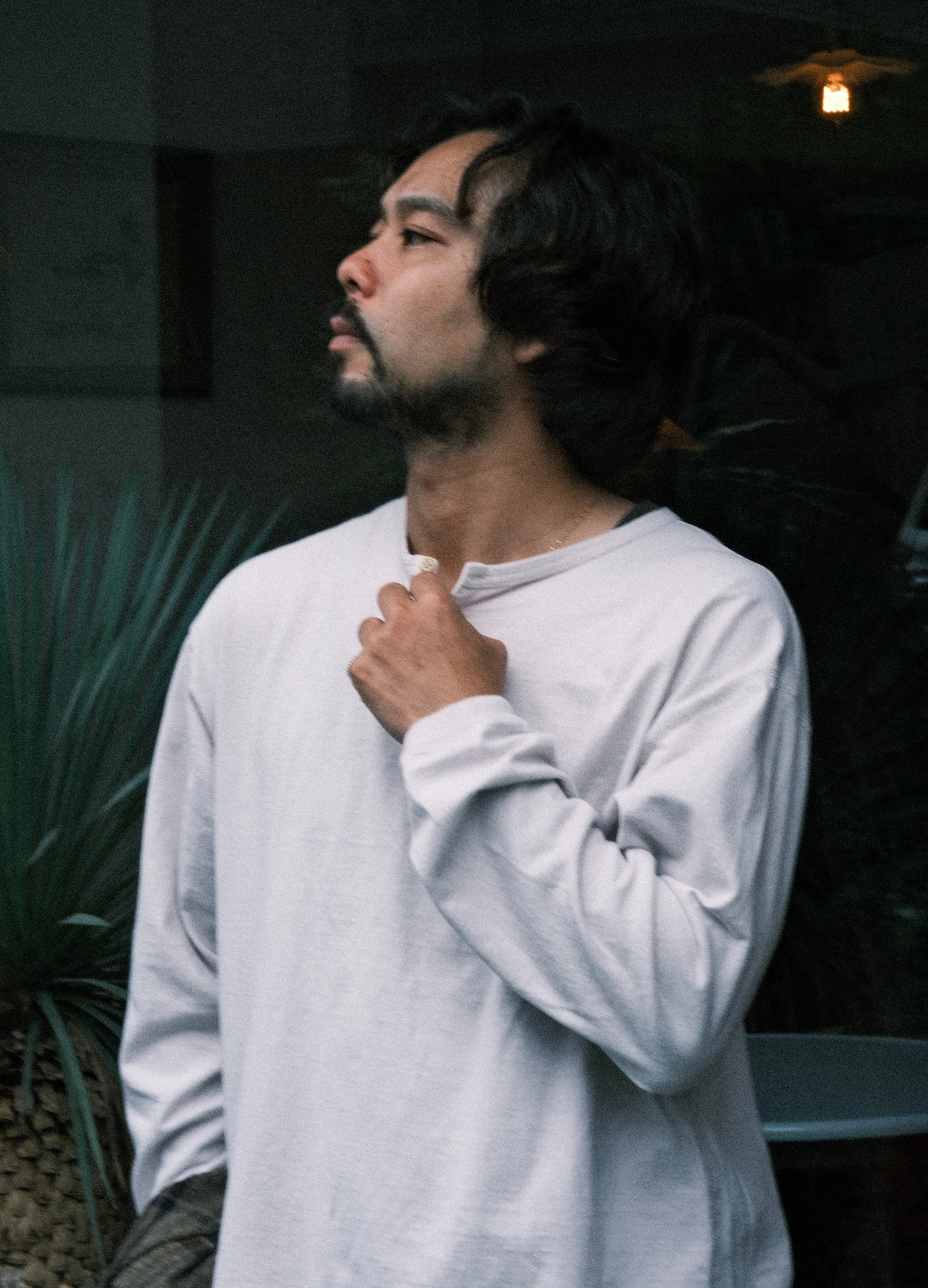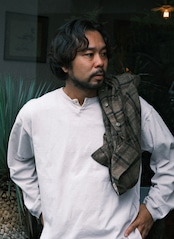 定番的なヘンリーTシャツのアンダーウェアなイメージを壊したく、ネックが浅めの1つボタンという点と、ボタンのサイズも従来のものは13mm程度の物が多く見られますが、SOURCEの物は10mmの物を採用しました。