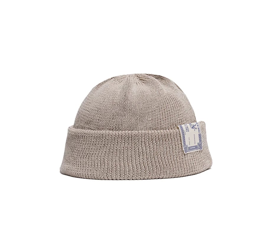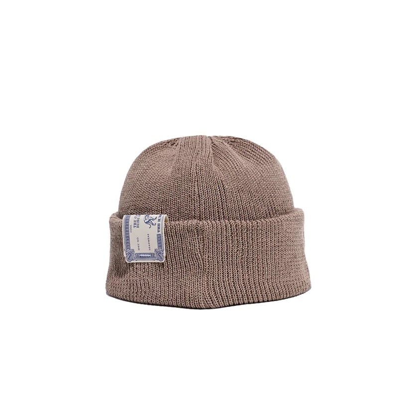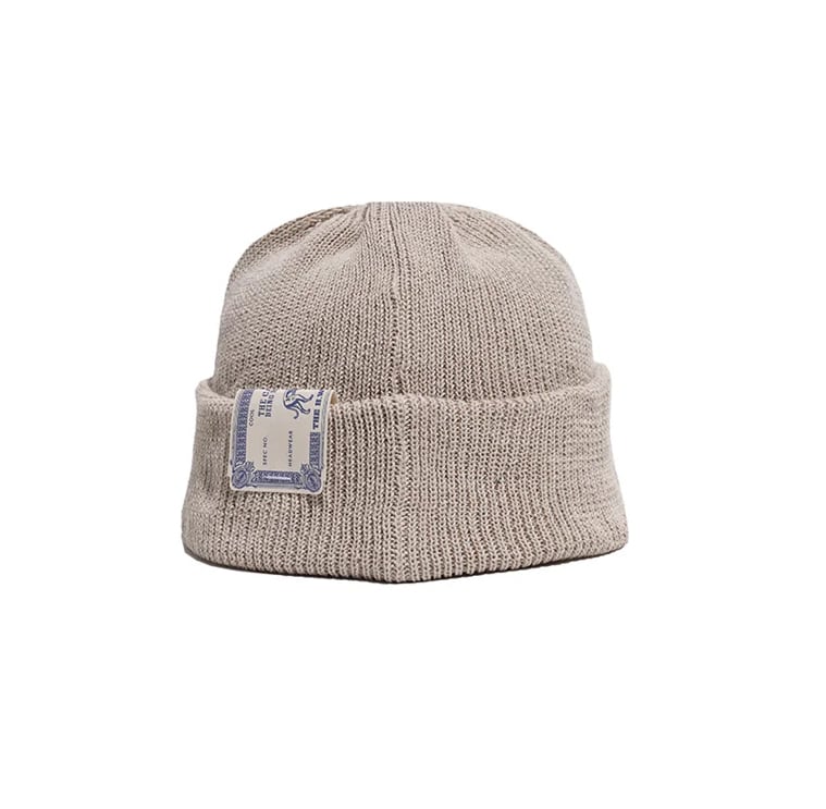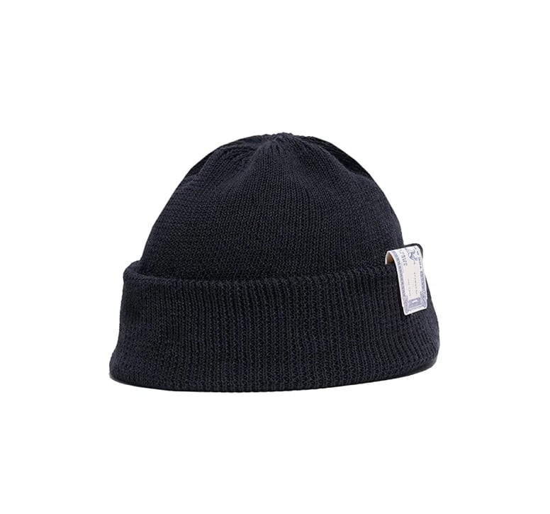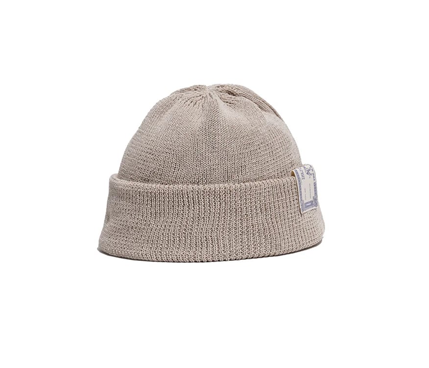 天竺リブ編みで縫製されたニットキャップ。