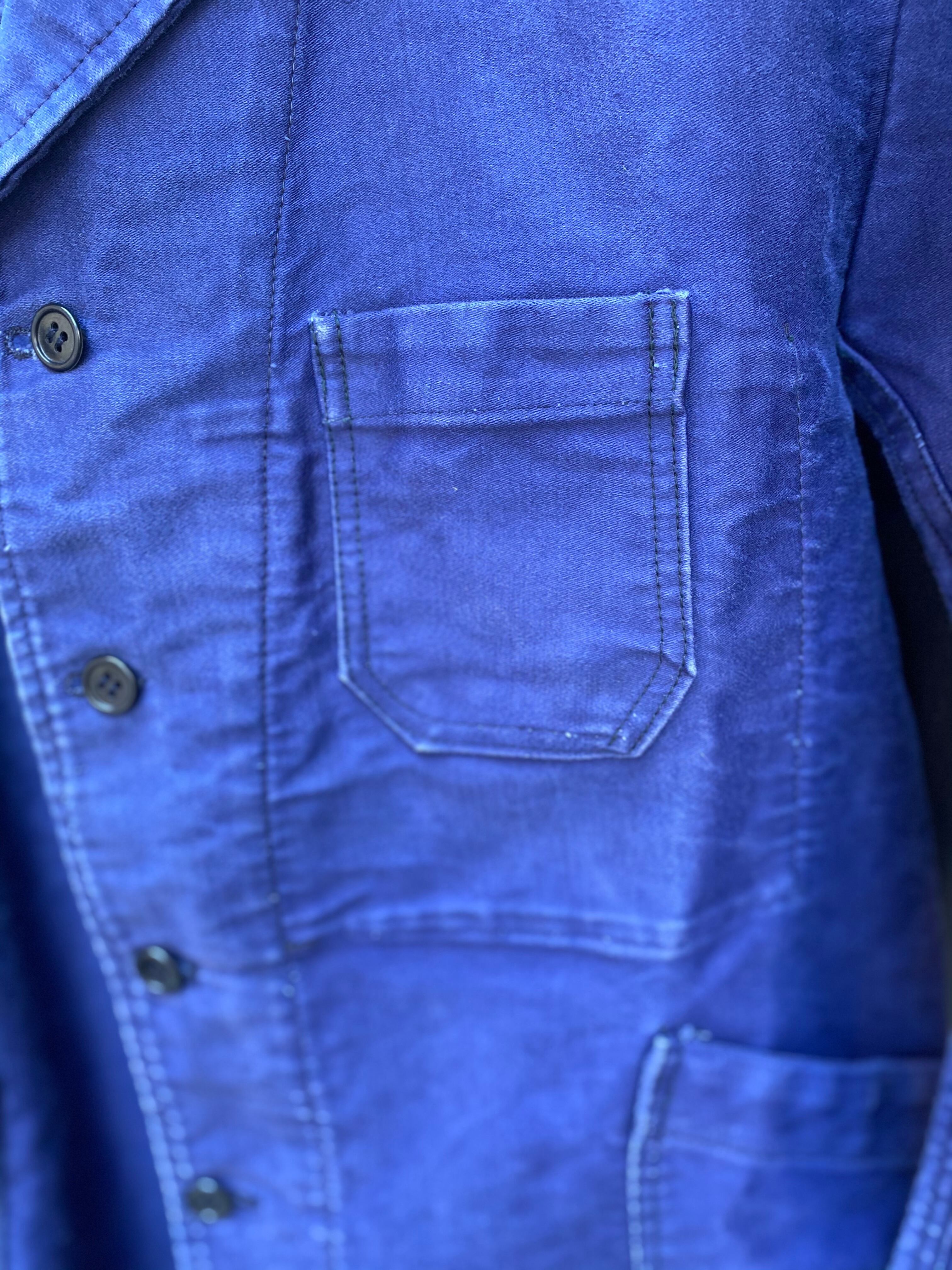 フランス1940年代の厚みのあるブルーモールスキンジャケット。