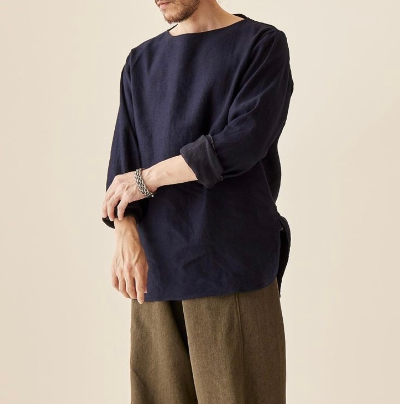 sus-sous シュス sleeping shirt スリーピングシャツ indigo linen herringbone
