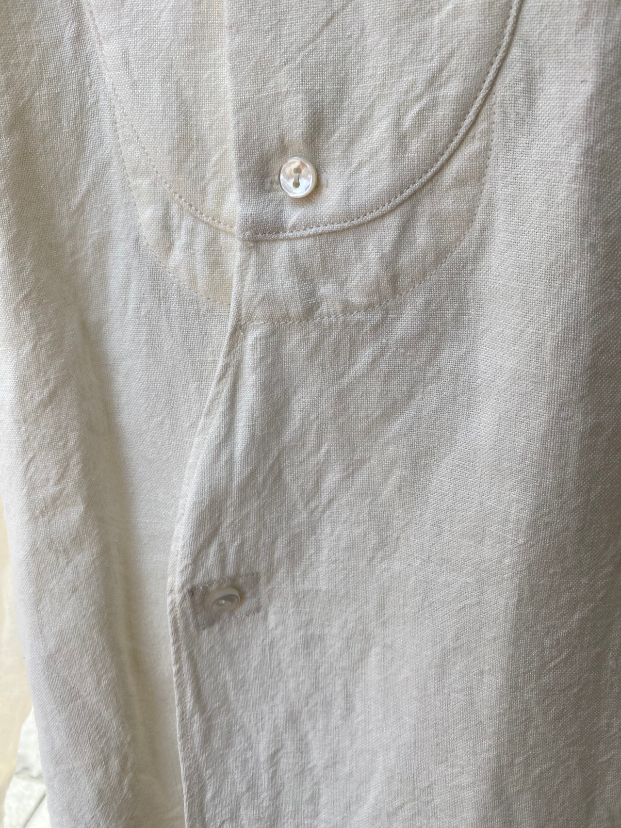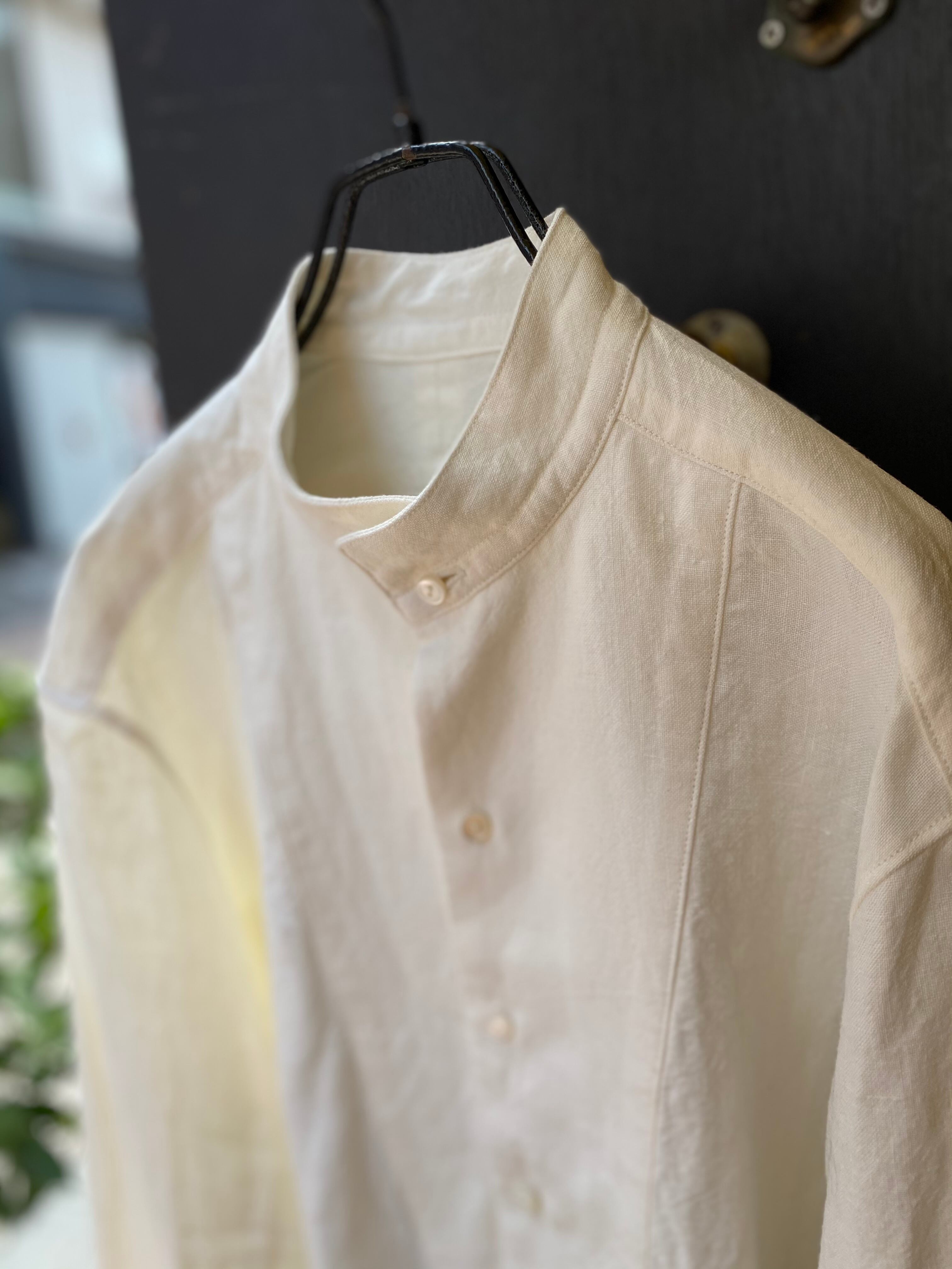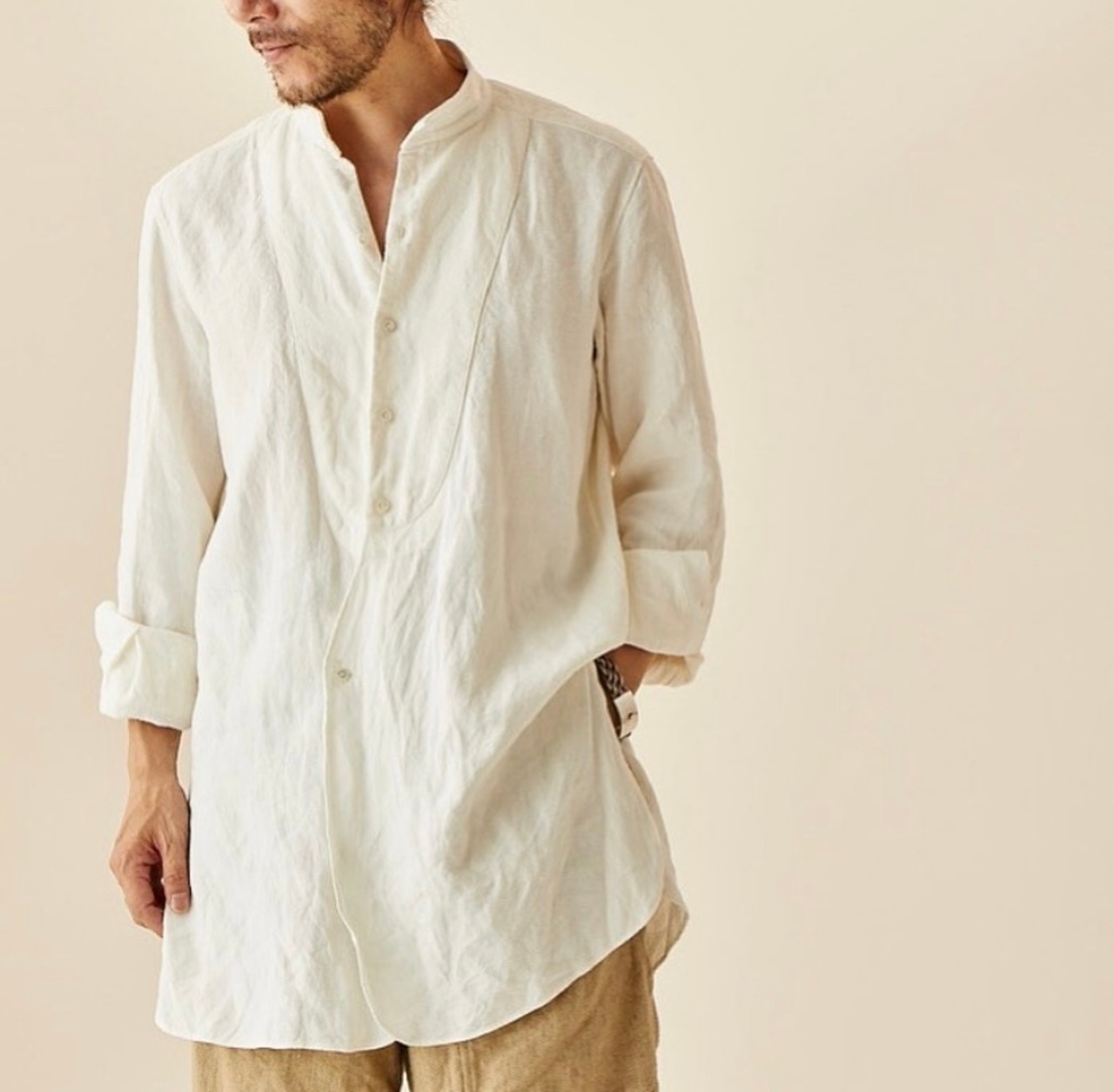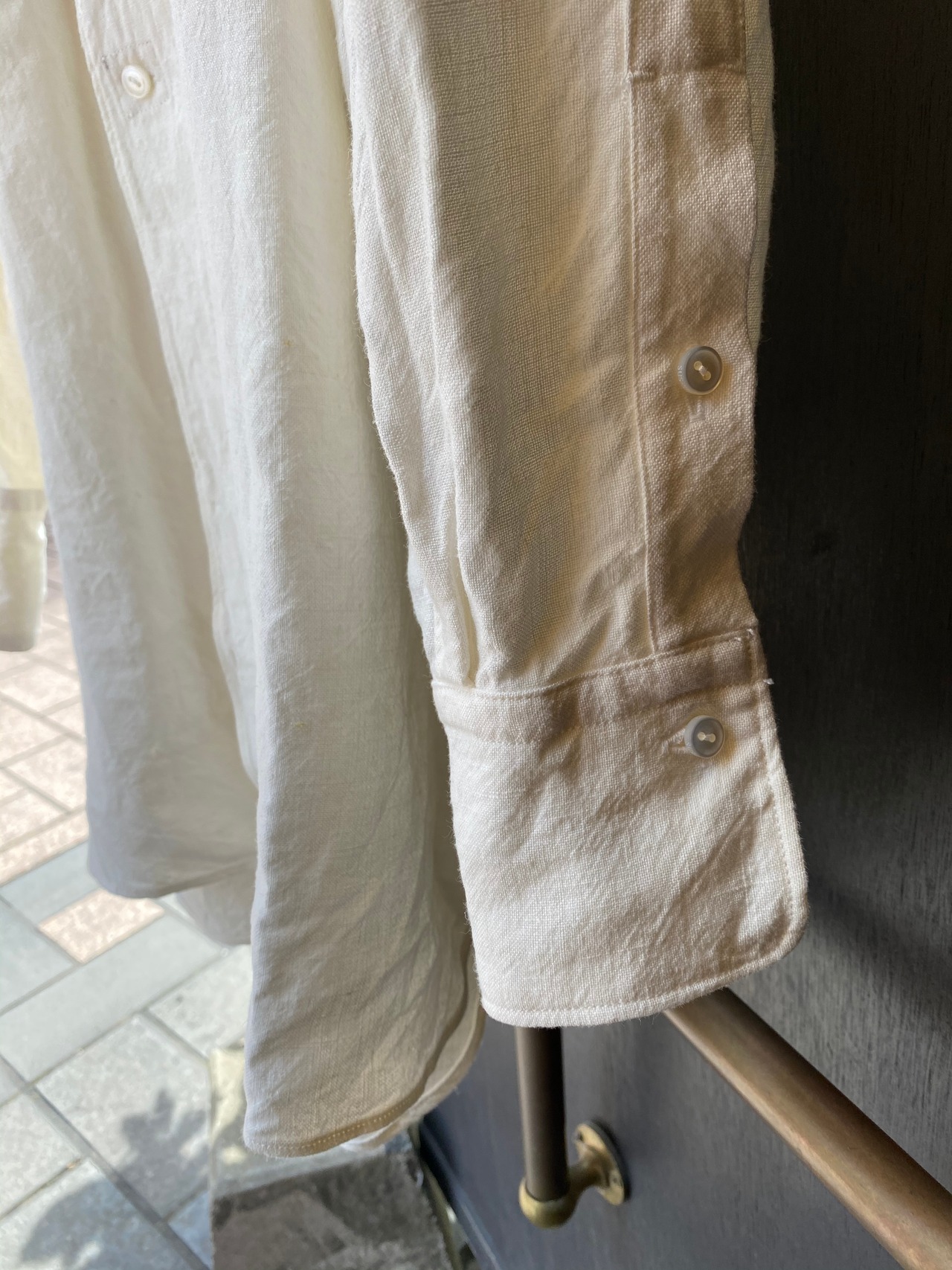 着込むほどに、洗い込むほどに生地表情に経年変化が見られ、ヴィンテージリネンシャツ特有の弾むような揺れが生まれるシャツとなっています。