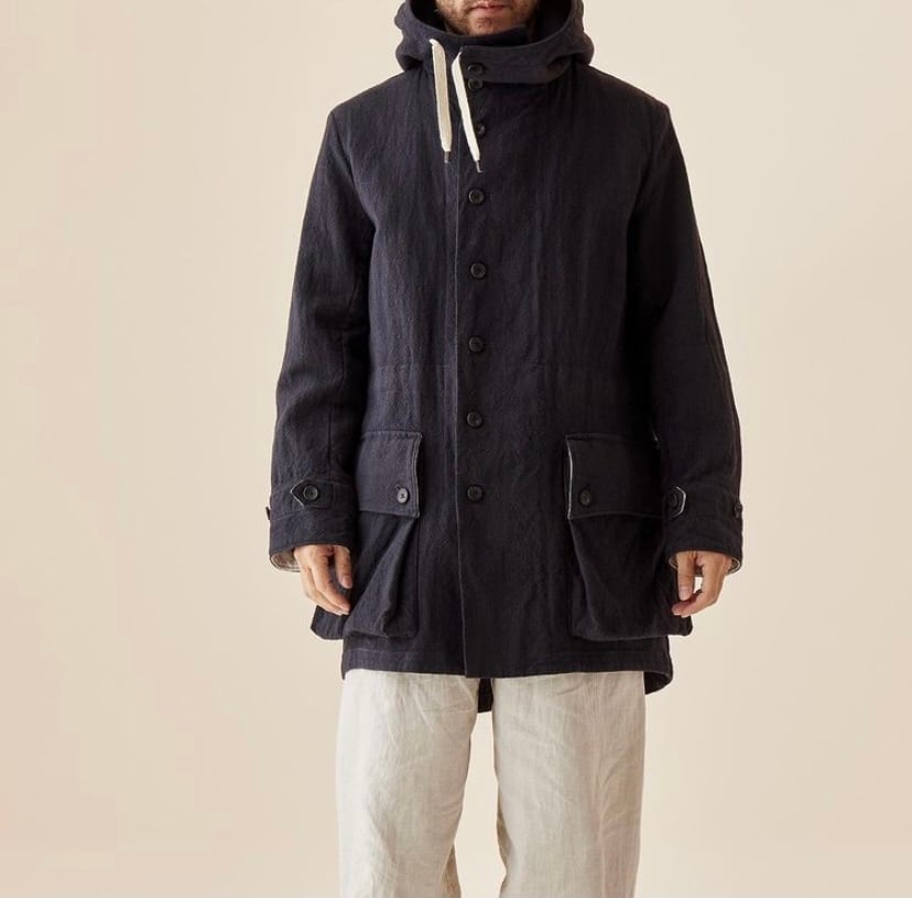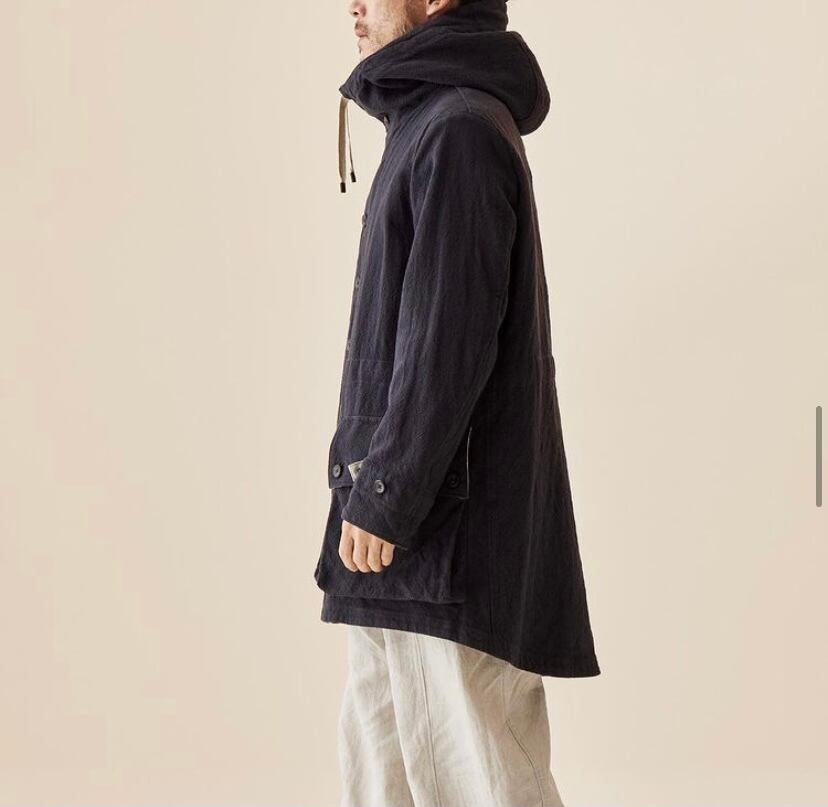 前開き部分は二重でボタン開閉でき風の通りを防いでくれますし、前を開けて着用いただいてもシルエット崩れず綺麗に着ていただけます。