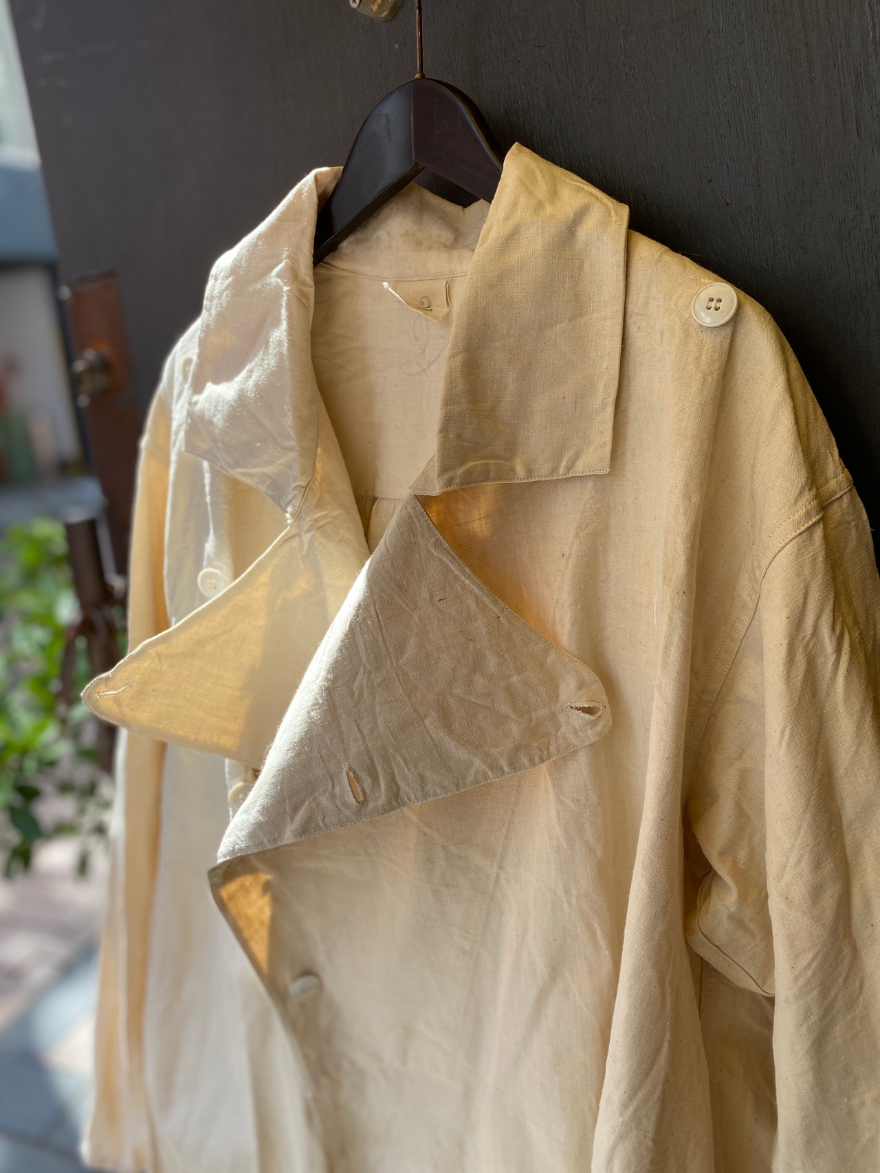 フランス軍の医療部隊で着用されていた希少なデッドストックのコートです。おそらく40〜50年代頃の物と思われ、凹凸感のある表情豊かな風合いのコットンリネン生地が使用されています。