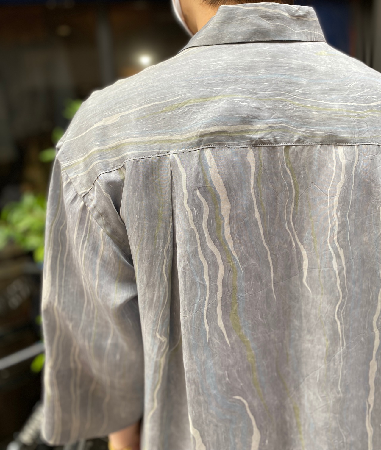 京都の職人による墨流しという手法で染め上げたオリジナル生地を使用したシャツ。