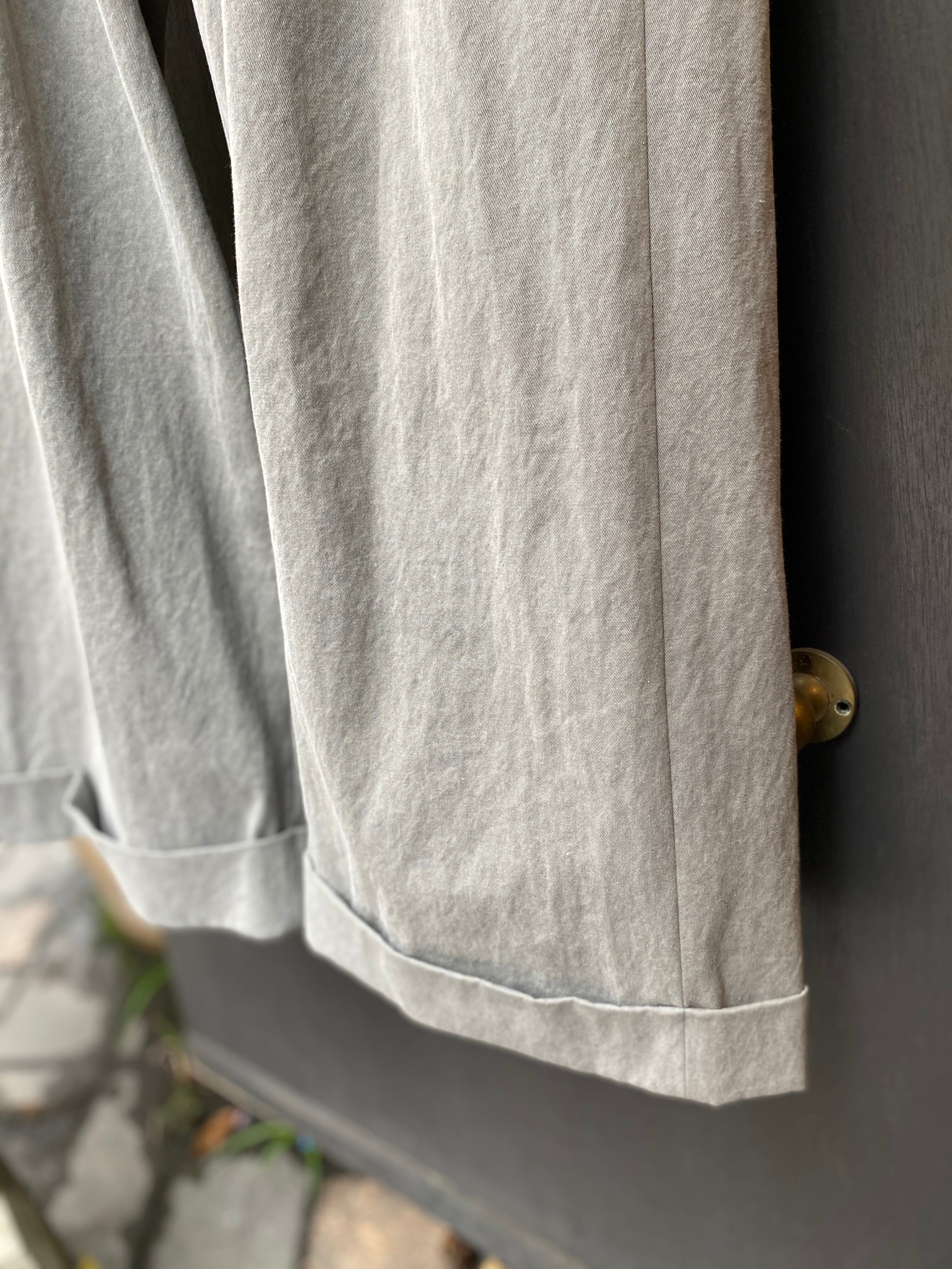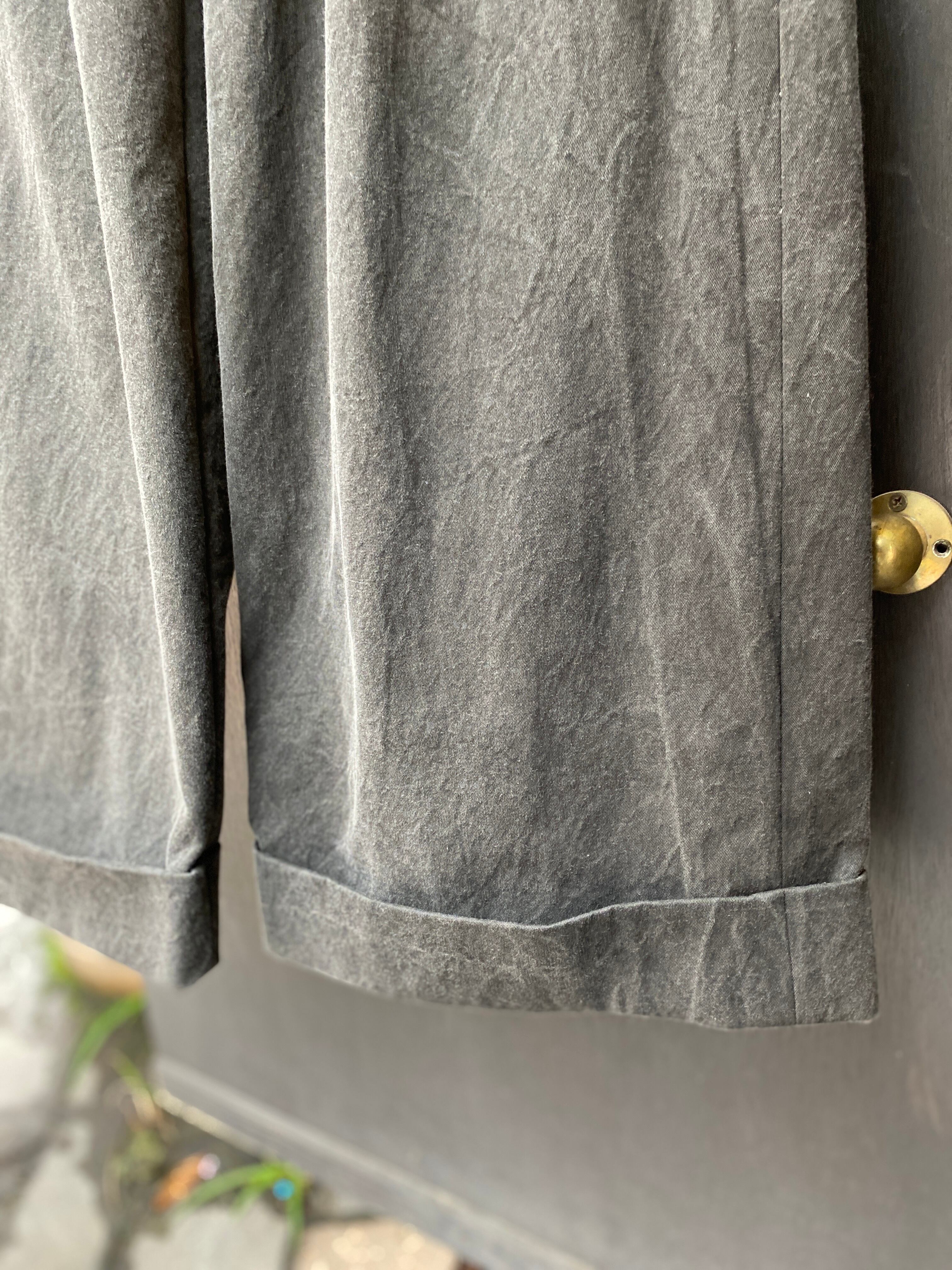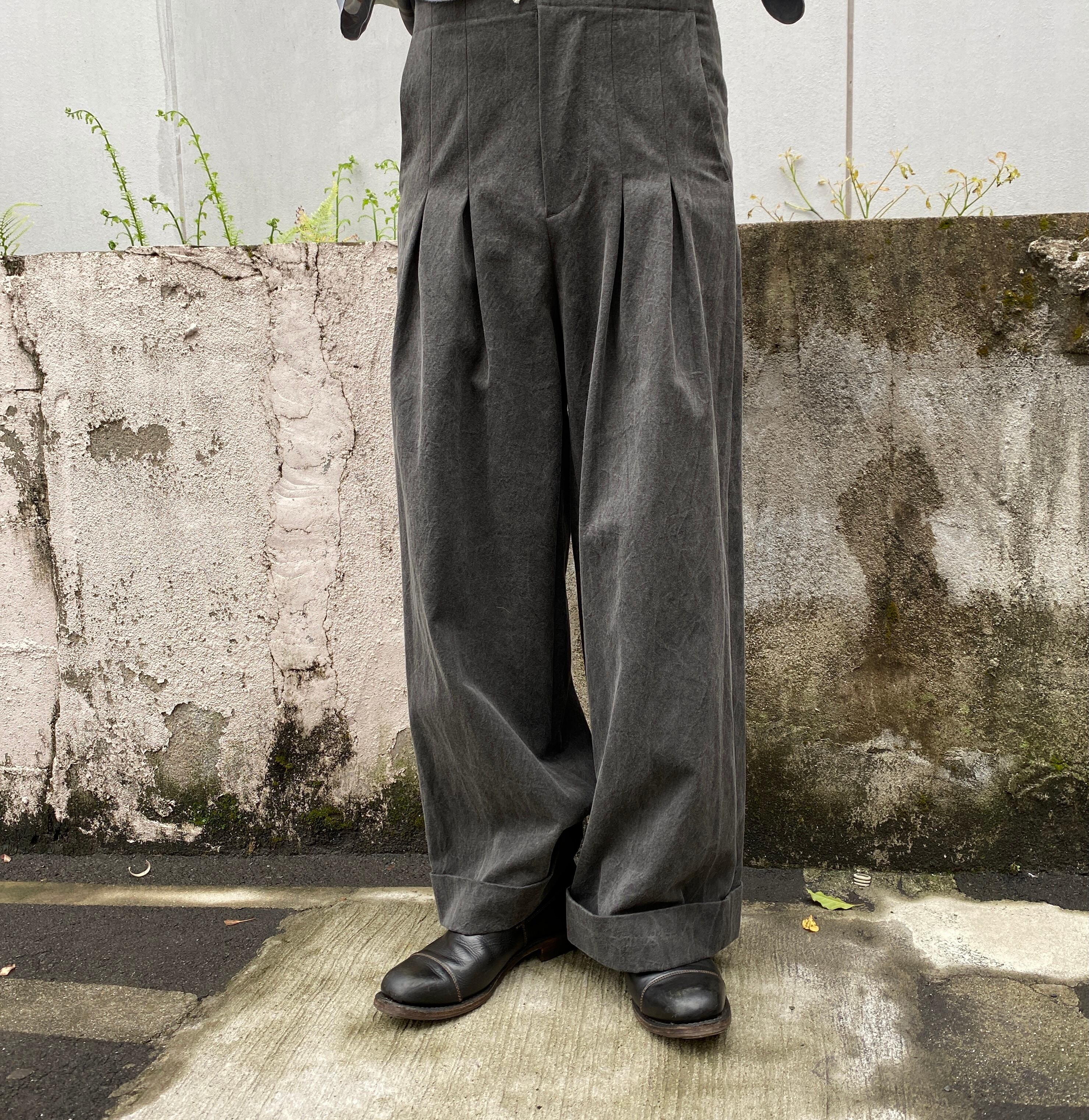 墨で染色する伝統的な技法を取り入れ制作したオリジナルコットンのワイドパンツ。荒く染め上げることで絶妙なムラ感を表現しています。中縫いのタックが特徴的なワイドシルエット。ドローコード付きのイージーパンツ仕様です。