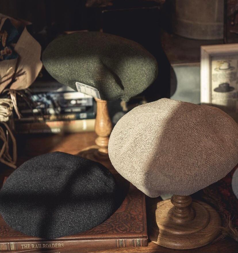 和紙をよって糸にし編み立てた帽子で、和紙のパリッとした硬さを残しながら天然素材の風合いも残る素材感。素材感が肌で伝わるようにスベリはなく、とてもシンプルなデザイン。