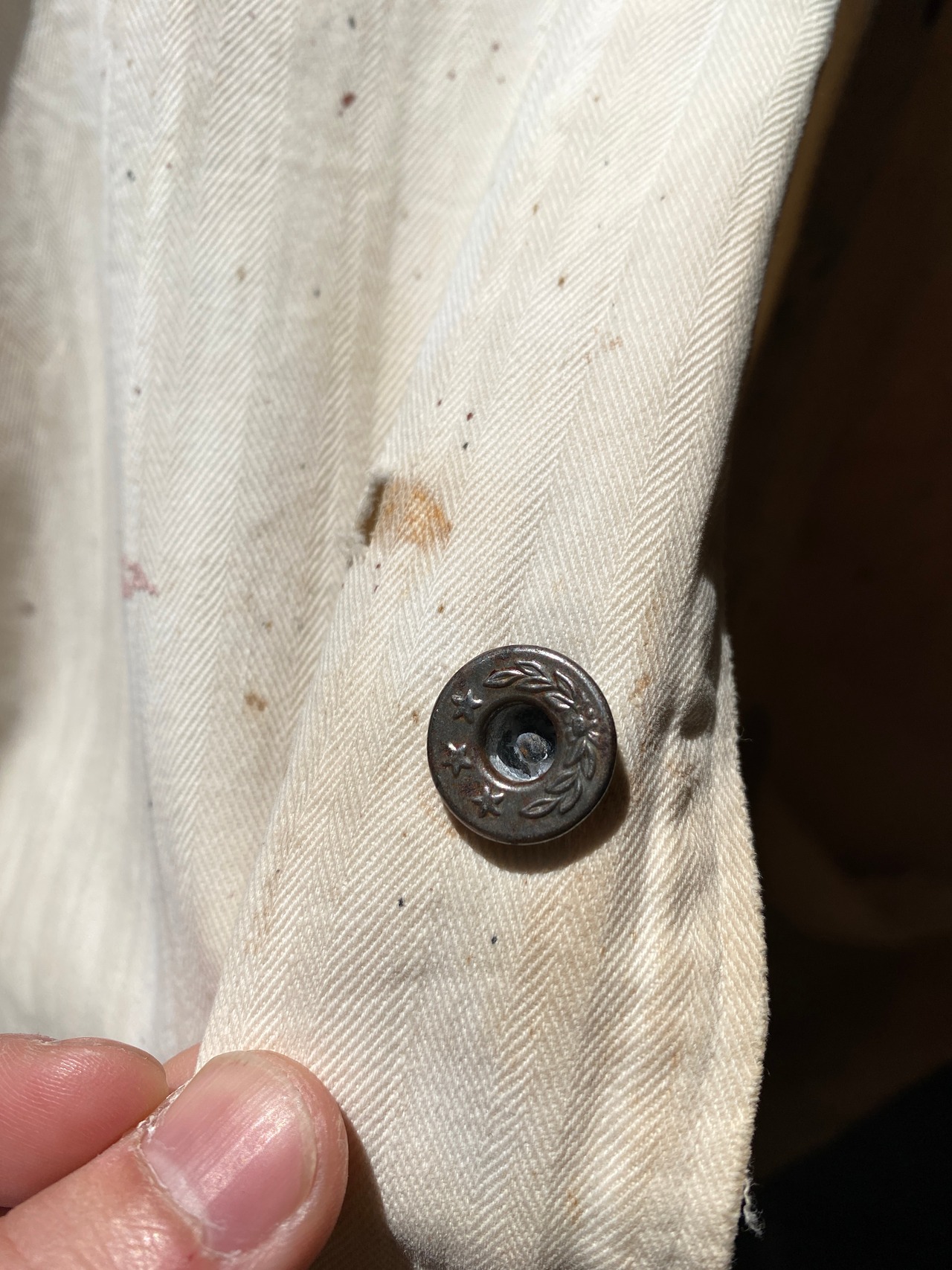 バックはチェーンステッチで、ボタンは月桂樹ボタン。