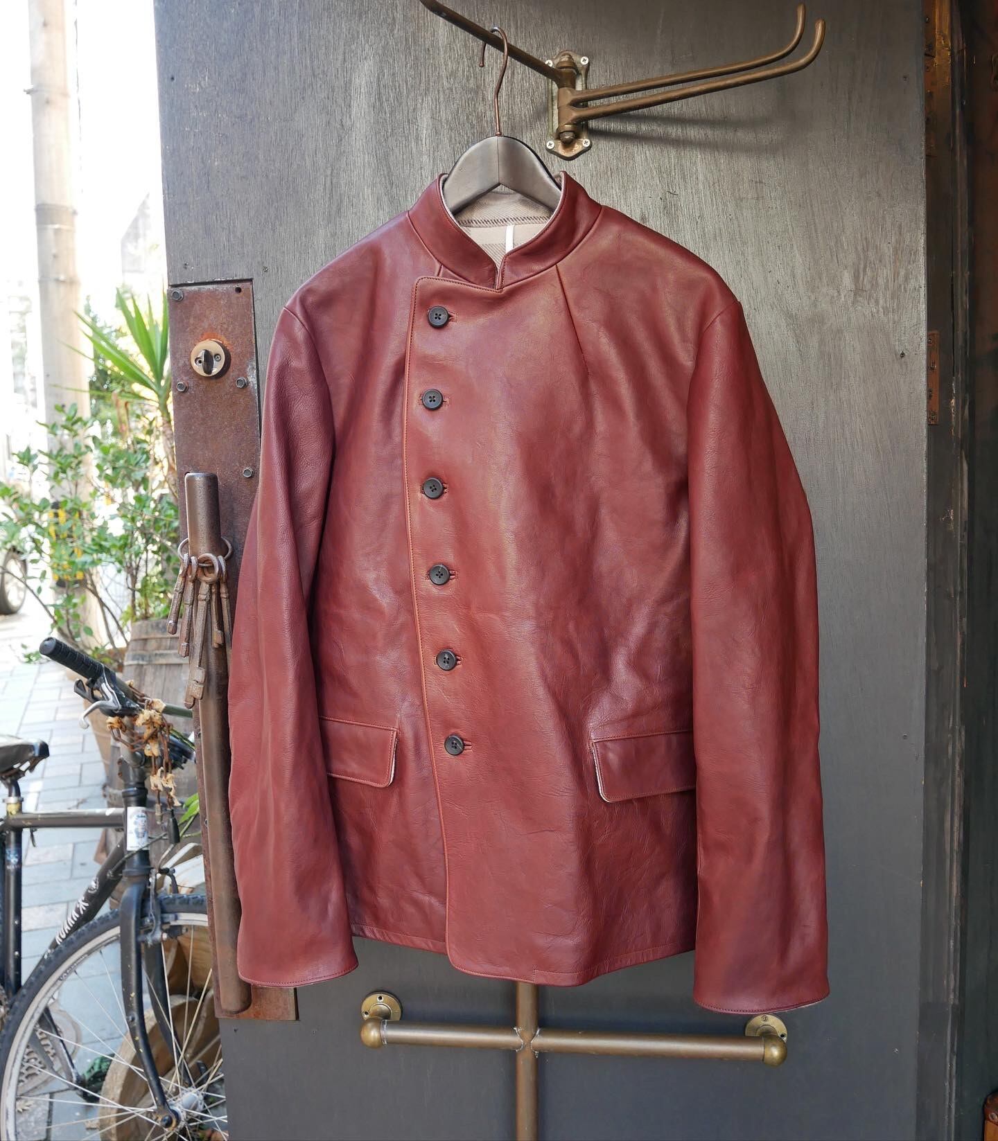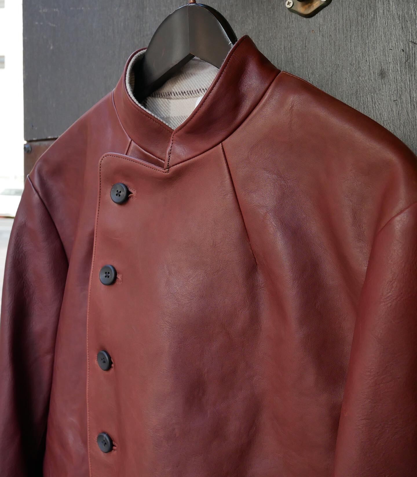 ベジタブルタンニンなめしを施したホースハイドレザージャケット。