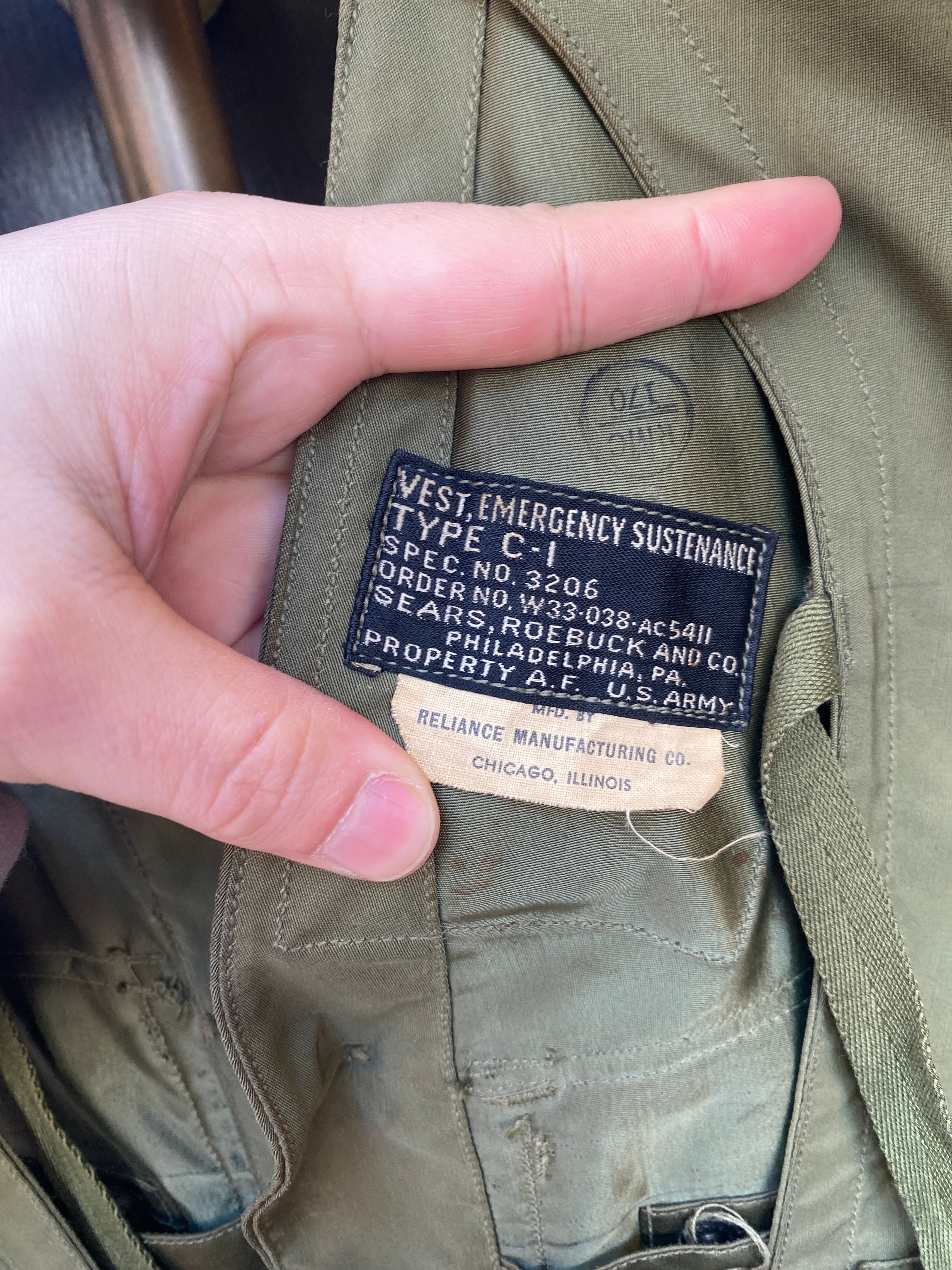 1940年代U.S.ARMY,AIR FORCEのエアフォースで使用されていたパイロット用C-1ベスト。
