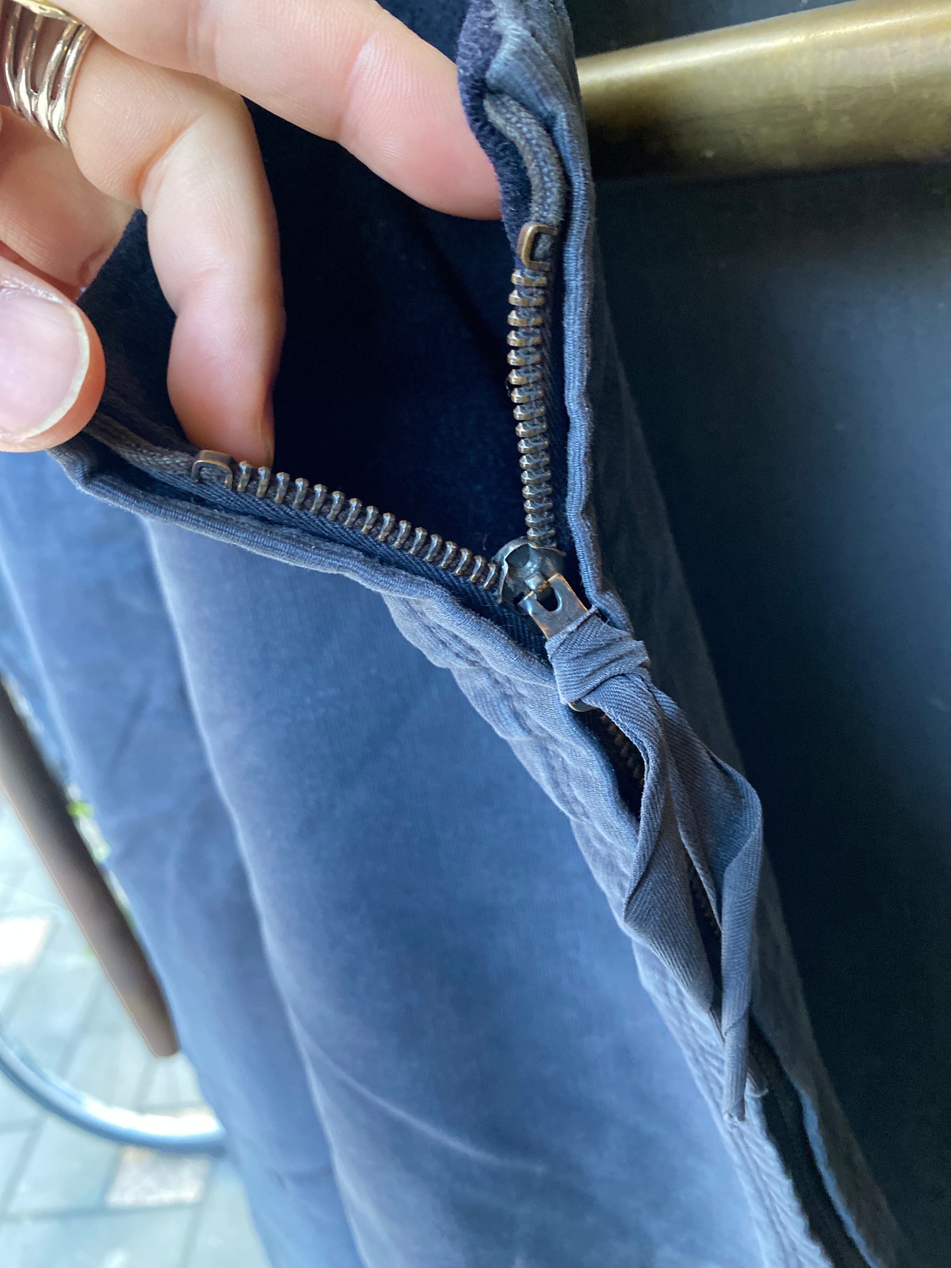 ジャングルクロスの細かい畝の入る素材で、裏地はブランケットで暖かく、ジッパータイプの初期型です。