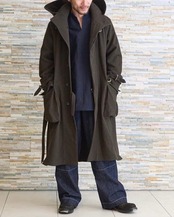 ミリタリーのモーターサイクルコートをベースに作られたコート。