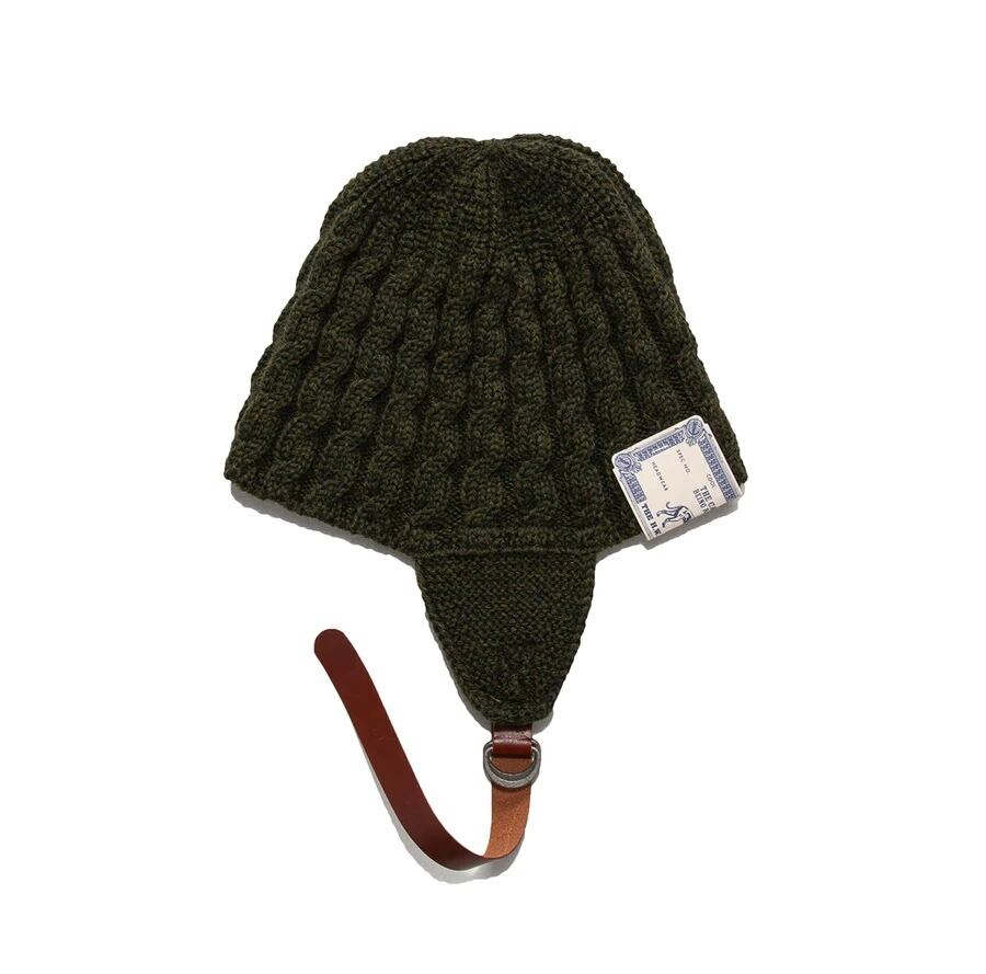 両サイドにシコロ(耳当て)が付くデザインのため、防寒機能としても使え、シコロ(耳当て)を上げて通常のニットキャップとしてもお使いいただける2way使用になっています。